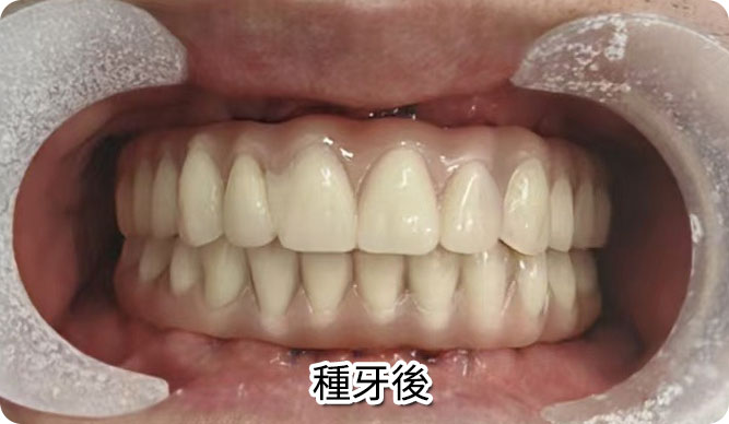 年齡:56歲 症狀:多顆牙缺失,餘牙鬆動,無法咀嚼 方案:即拔即種種植技術