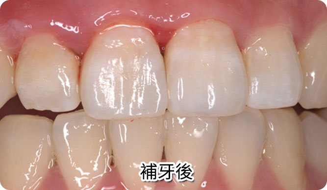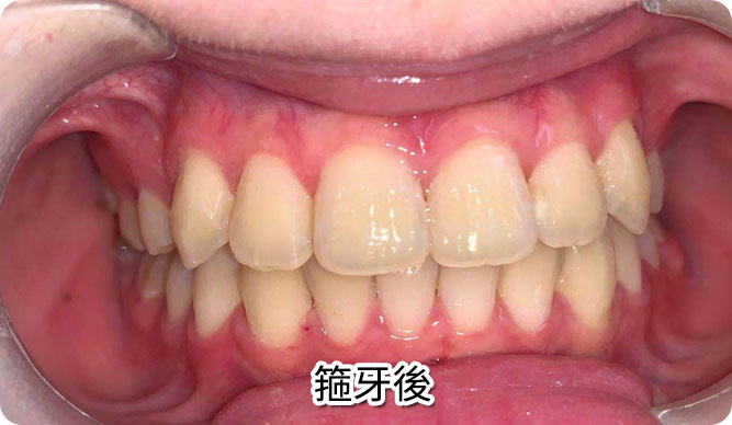 症狀:牙列不齊,兩顆虎牙突出明顯。 矯正後,排齊牙齒後,咬合正常。